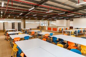 En 8.000 metros cuadrados se construyeron: 40 aulas de clases, biblioteca, auditorio, áreas administrativas, aulas múltiples, cuatro salones de talleres múltiples, cuatro aulas TIC y una sala de investigación, cuatro salones de estudio, tres salones grupales, Cocina y Comedor, cancha múltiple y parqueadero; áreas totalmente dotadas.